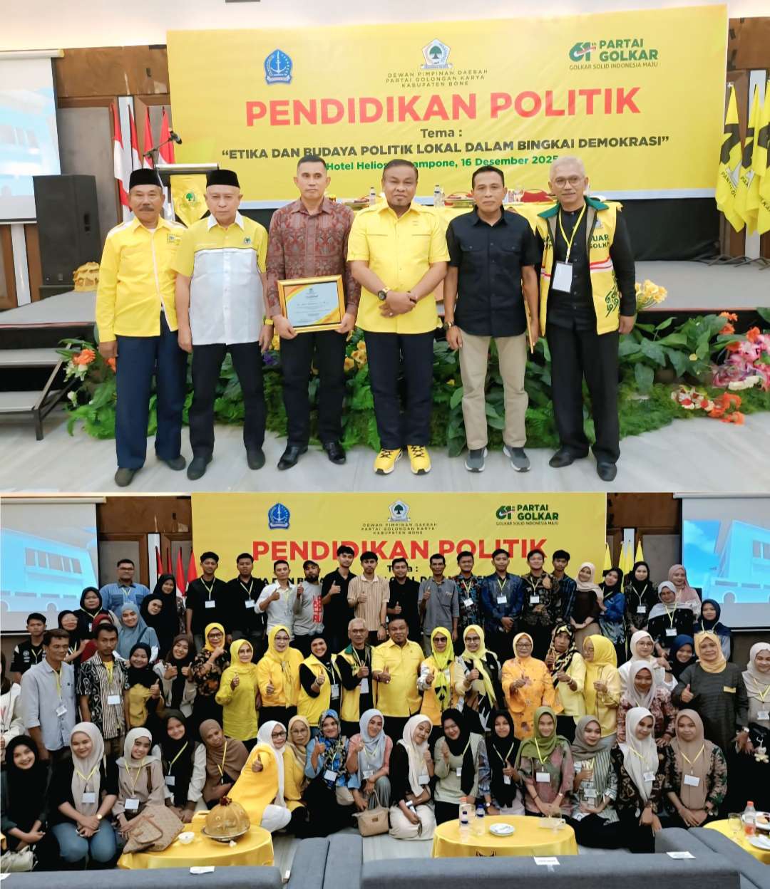 Karyarakyatku.com, Bone.- Dewan pimpinan Daerah (DPD) Partai Golongan Karya Kabupaten Bone menggelar Pendidikan politik selama dua hari. Pendidikan politik digelar di Hotel Helios jl. Langsat Kota Watampone, Senin-Selasa (16-17/12/2025).